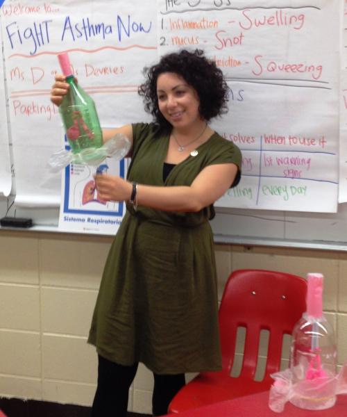 I serve as an Asthma Educator with the Respiratory Health Association and offer education to students with asthma in 3rd through 8th grades, along with parents, staff and other community members throughout Cook County.