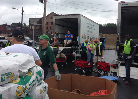 Consumption of fresh produce is essential to healthy living, yet for many, access to fresh produce is inaccessible due to its high price tag. Furthermore, people often shy away from purchasing produce due to the unknown of how to prepare it. Greater Pittsburgh Community Food Bank has made it their priority to provide their clients with access to fresh fruits and vegetable. Various pantries throughout the Food Bank’s 11 county service area receive produce from the Food Bank to then give to people in need. In addition to pantry distribution, Greater Pittsburgh Community Food Bank provides fresh fruits and vegetables directly to clients through our Produce to People large-scale distribution program. Produce to People really helps the Greater Pittsburgh Community Food Bank reach people in the community and engage them in our services! Families can come to the monthly Produce to People events and leave the distribution with as much as 30-40 pounds of fresh produce.