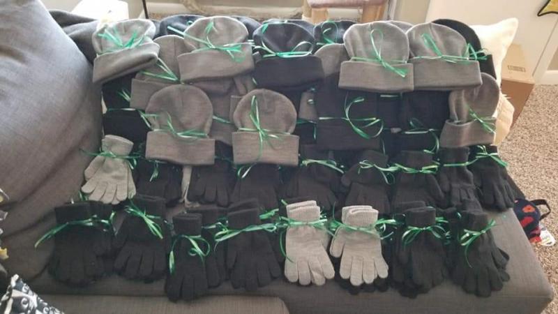National Health Corps Florida Americorps member, Laura, and I tied ribbons on 84 pairs of winter gloves and 25 winter hats.