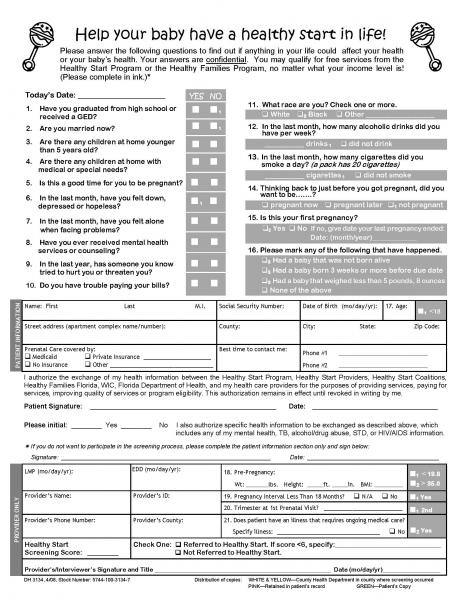 There are three ways that I perform community outreach in my service position with Healthy Start. The first is through provider visits. OB/GYNs in the state of Florida are required to give out a Healthy Start prenatal screen to every pregnant patient. The Healthy Start screen (pictured to the right) is a tool designed to score how much a mother is at risk for infant mortality. The providers are educated on how to help their patients properly fill out the Healthy Start screens. During my provider visits I go to physician offices in Jacksonville to pick up the completed Healthy Start screens. I then review them for accuracy, and send them to the Florida Department of Health in Duval County to be processed.