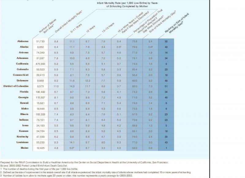 Community outreach is defined as “the practice of conducting local public awareness activities through targeted community interaction.” Community outreach might be a team conducting HIV tests in a bus in neighborhoods, students handing out condoms on college campuses, or distributing fresh fruits and vegetables to food deserts. The purpose of community outreach is to empower and educate under-served communities, where many people struggle with poverty, a lack of education, and poor health outcomes, all of which are inter-related. For example, studies have shown that the less education a mother has, the higher the risk of infant mortality. This chart (below) from a study done by the University of California shows the correlation.