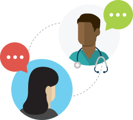 [Body Image Description: Two cartoon people each with quote bubbles who are connected by a dashed line.]