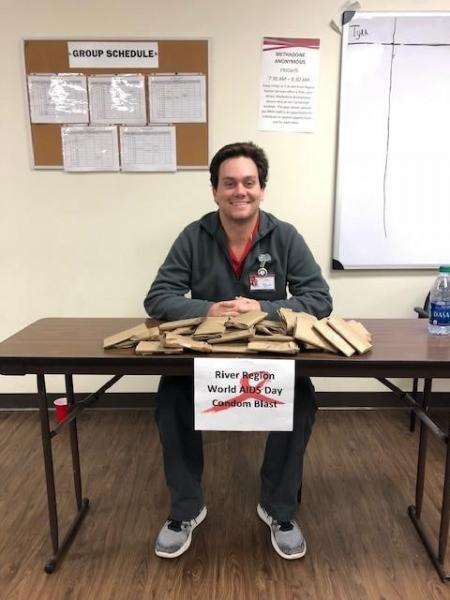 A key component of HIV/AIDS prevention is understanding high risk behaviors involved in the disease’s transmission. One of these behaviors is engaging in unprotected sex with a partner whose HIV status is unknown. To raise awareness of this potential risk factor we distributed packages of condoms to River Region’s clients and explained using them as a preventive measure for HIV/AIDS.