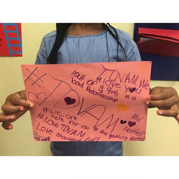 On an average service day, I facilitate the WAVE (Working Against Violence Everyday) program. It is a violence prevention program that includes bullying prevention, relationship abuse prevention, conflict resolution, self-esteem activities, and even emotion identifying strategies. My position gives me the flexibility to not only facilitate these classes for local public school students but also with children victims on-site at our shelter.