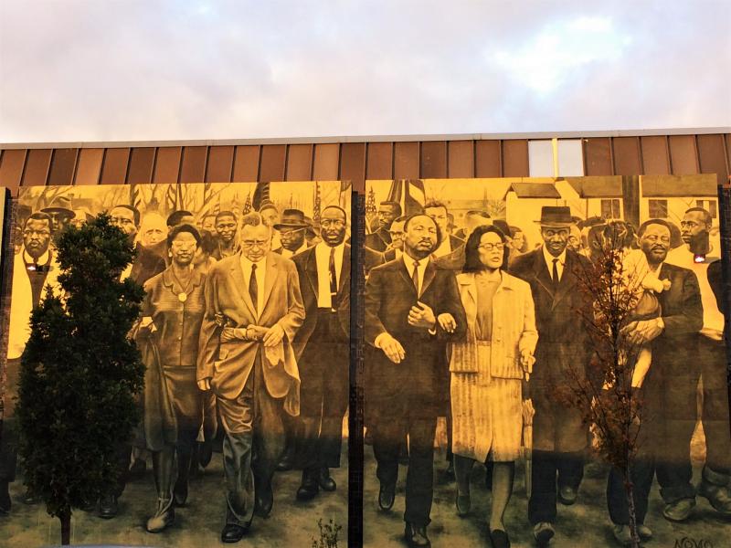 Over the past months, these faces have become as familiar as those of the Selma mural across the street. But one face stands out: a toddler, her hair pulled back in a high ponytail, her eyes huge and dark. The girl and I sit in the corner during meetings and make towers from mismatched blocks. When they fall, the girl’s shrieks of delight halt conversation.
