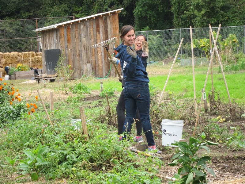 Anna and Amy at a service project in a Hill District community garden