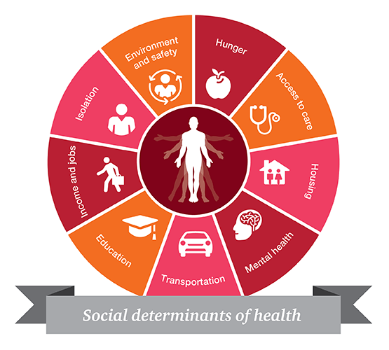 There are so many factors involved in a patient’s care that are beyond what occurs in the health center: the social determinants of health. Social determinants of health can be things like one’s childhood experiences, diet, access to care, education, and  more. They are often beyond individual control, stressful, and require choosing (or, perhaps more often, lacking any choice at all) between endeavors many of us take for granted, such as pursuing higher education or seeing a specialist for our care.