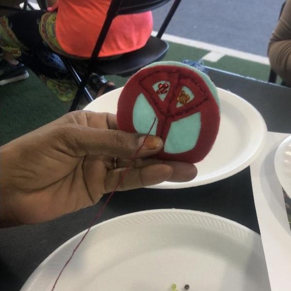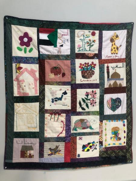 During art classes at my host site, I’ve learned how a simple fabric can communicate where a person is from without using words. For example, a white fabric with small, unique accent patterns for a dress may show roots from Ethiopia whereas a vibrant dress made from a specific fabric pattern may show roots from Sudan. I am no expert in identifying where fabric patterns may originate from; however, communicating and learning about these fabric roots has opened the door to learning so much about how people from different countries in Africa identify with art. The same is true for all countries around the world as art is so important to culture and how one identifies. Art can also be therapeutic, comforting, and a good mental health practice. In a previous art class, women were asked to sew a square showing something they love or something that is special to them. These squares were woven into the quilt you see below. You can see how each square is so unique. All of these artists come from different parts of the world and may speak different languages, but they were able to communicate and share something that is special to them through art.
